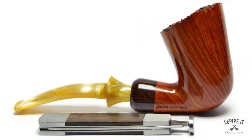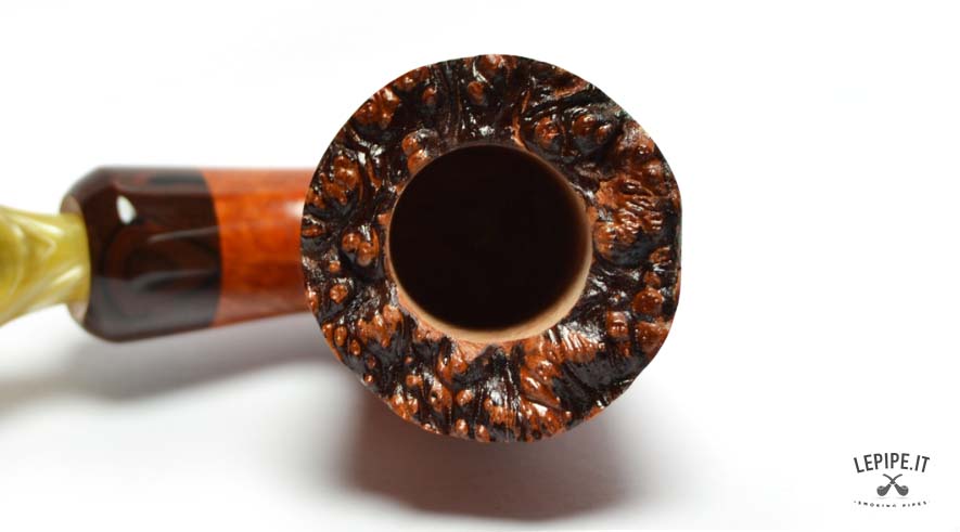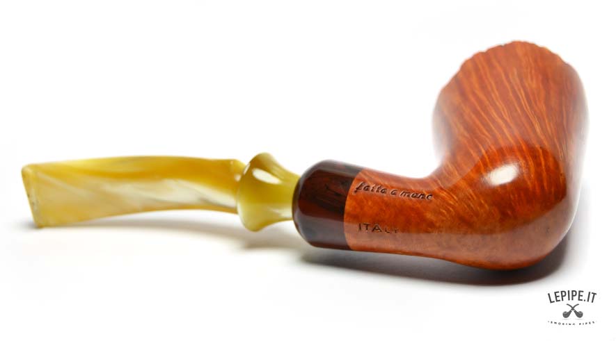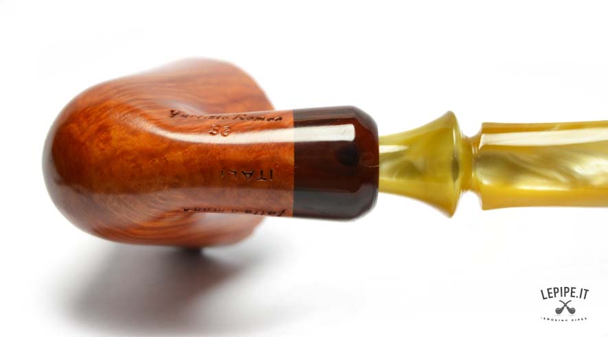 Weighing just 47 grams, this pipe is impressively light, and thanks to its ergonomic profile, it's suited for long smokes as well as for visual admiration. Every element reflects the meticulous craftsmanship and creative energy that define Fabrizio Romeo's work — pipes conceived not only as tools but as small architectures to experience and admire.